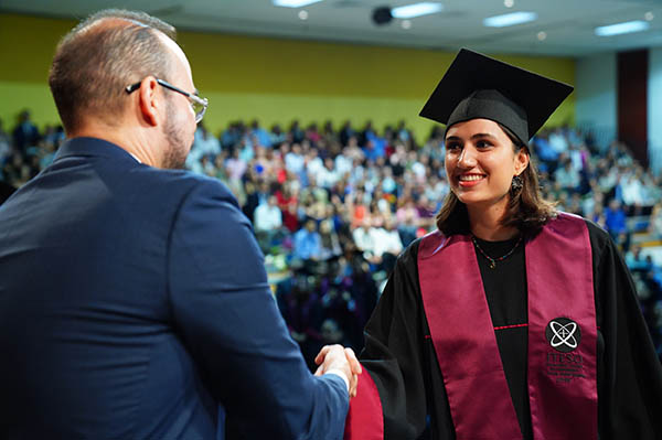 A nombre de sus compañeros, reconoció a todos los profesores que los guiaron en el camino y dedicó la culminación de sus estudios profesionales a sus familias.